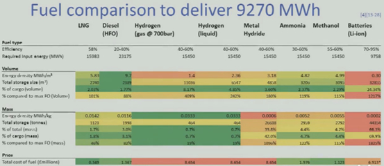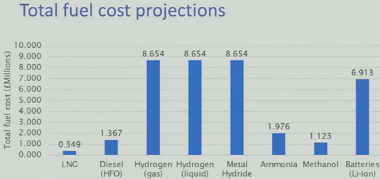 相同船舶运力下不同能源横向对比