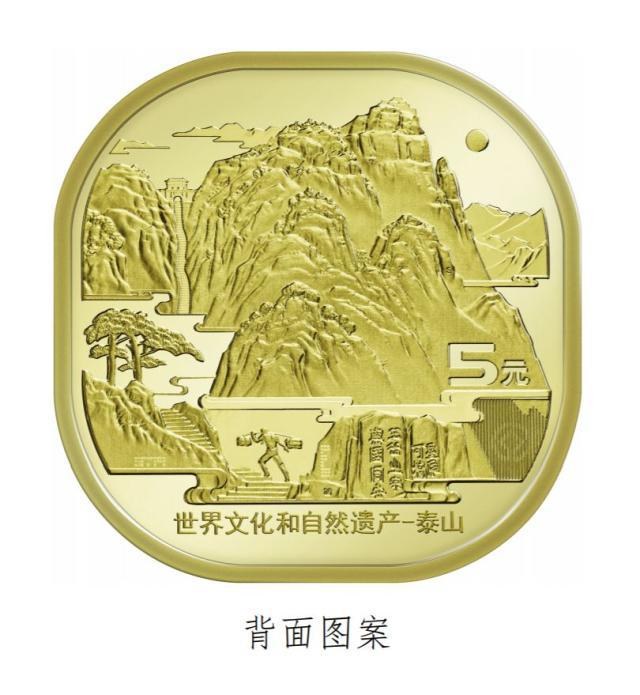2019年发行的圆角方形的泰山纪念币,面值5元