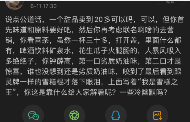 这句话里的“它”,要是代指干饭人离不开的米面油盐蔬菜瓜果,有钱人绕不过的衣裤鞋包香车名表,或许还没那么刺耳。可说这话的不是无奈菜贩,也非狂拽柜姐,而是某网红雪糕的创始人,离谱指数因此瞬间被拉到最大。