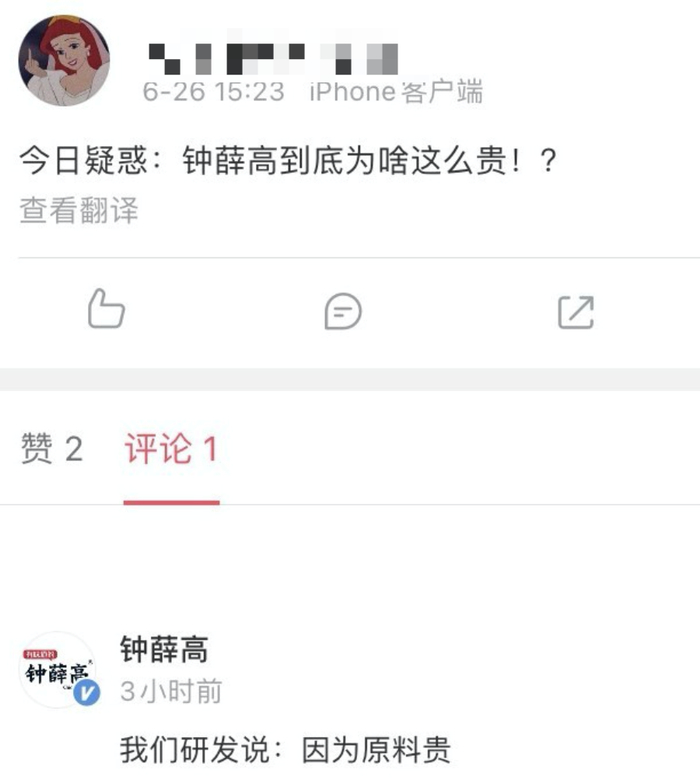 有网友质疑:“羊毛出在羊身上,是不是钱都给明星代言人了?”/微博截图