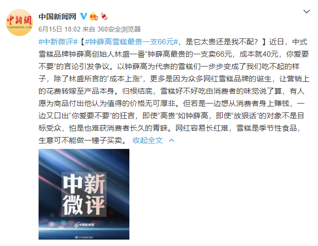 钟薛高,能“糕贵”多久?/微博@中国新闻网