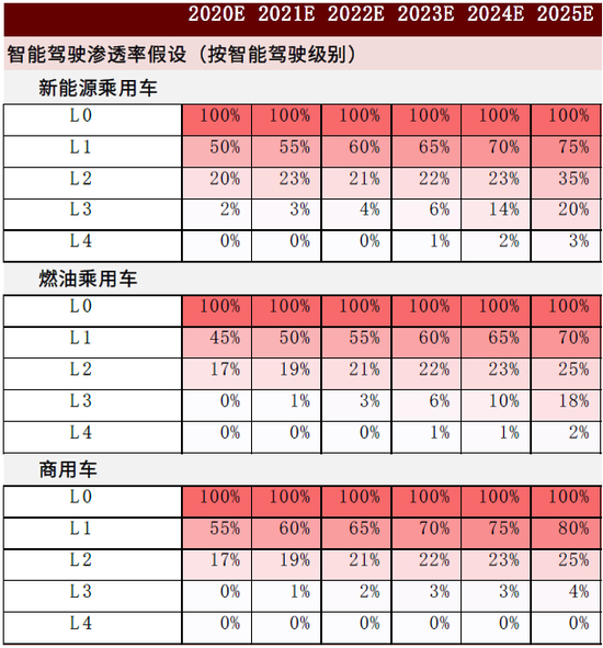 图表:智能驾驶渗透率假设