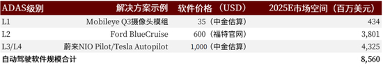 图表:智能驾驶软件市场空间测算