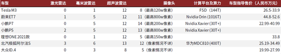 图表:尽管目前L2级功能为主要卖点,智能车企普遍采用冗余的硬件配置