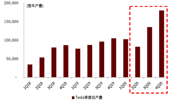 图表:Tesla逐渐走出产能瓶颈