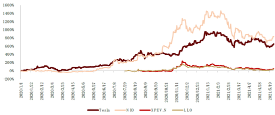 图表:造车新势力受到资本市场热捧,2020年内股价快速攀升