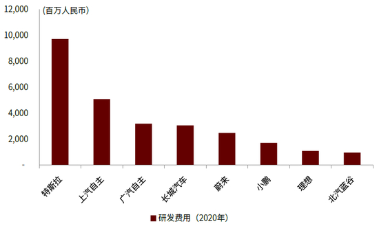 图表:主要智能车企研发费用投入情况