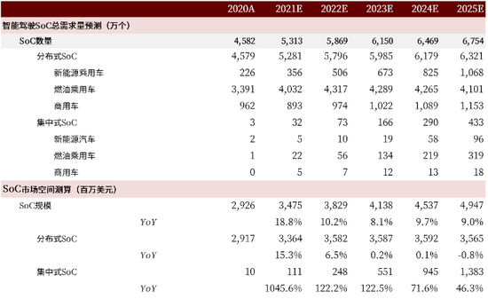 市场空间测算:全球2025年智能驾驶相关SoC市场规模有望达到约147亿美元