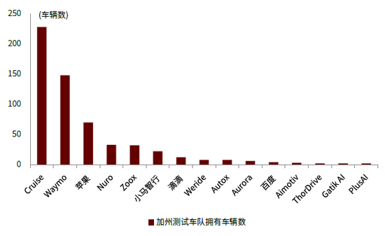 图表:不同软件企业在美加州路测车队数量对比(2019)