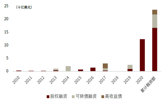 图表:Tesla 2020年获得大量股权融资