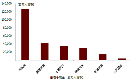图表:主要智能车企2020年末在手现金情况