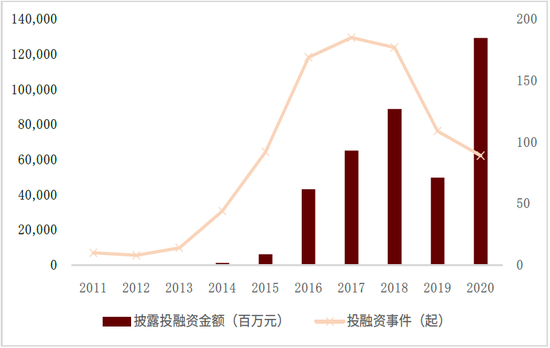图表:中国智能汽车领域投融资金额及事件变化