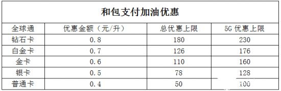 第四档,中国移动的全球通金卡用户每升优惠0.5元;