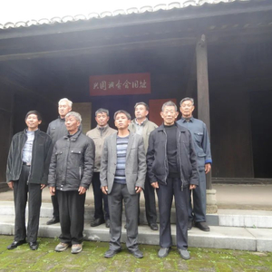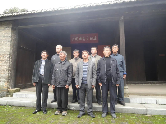 2013年,兴国调查8户家庭后代在兴国调查会旧址合影。新余博物馆供图