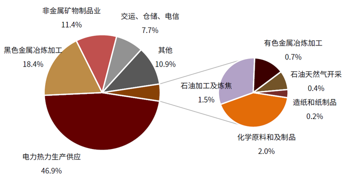 从需求端看,CCER需求量主要由碳排放配额总量及CCER可抵消碳排放配额比例两个因素决定。当前仅发电企业纳入碳交易市场,随着碳交易市场的日渐成熟和逐步完善,我们预计未来碳交易市场将会覆盖更多的行业。根据中国碳核算数据库数据,电力与热力部门2018年碳排放量高达4510 Mt,占总碳排放量比重约47%,而其余与八大高耗能行业(石化、化工、建材、钢铁、有色、造纸、电力和民航)相关的部门也均有较高的排放量。我们认为“十四五”期间,八大高耗能行业有望陆续纳入全国碳市场覆盖,预计碳交易需求将进一步延伸。