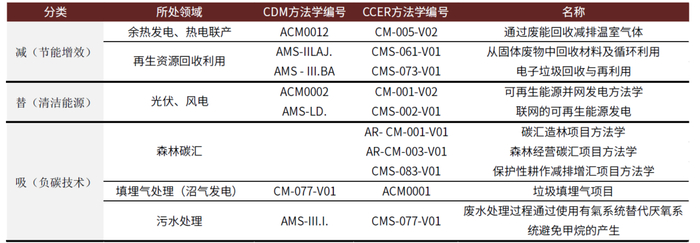 CCER项目类别较多,长期来看具有实际减碳能力的项目或优势显著