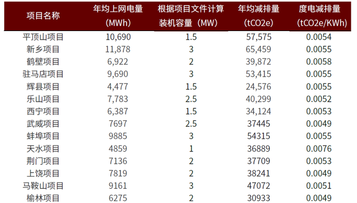 风电、光伏可通过替代火电实现碳减排。受益碳中和政策,光伏、风电等可再生能源近年得到快速发展。存量已备案项目中,光伏风电等可再生能源项目占比超70%。根据项目设计文件,光伏、风电项目的减排工农贡献主要来自于替代以火电为主的电网同等电量(即项目基准线),减少电网化石燃料的使用,从而降低二氧化碳排放。