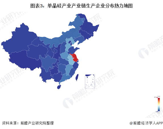 单晶硅产业产业链区域热力地图:江浙地区单晶硅企业较多