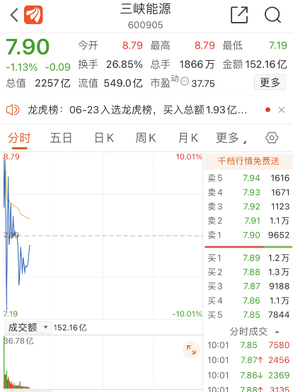 蓝筹次新股三峡能源开盘5分钟涨停变跌停:成交额已超140亿 发生了什么?