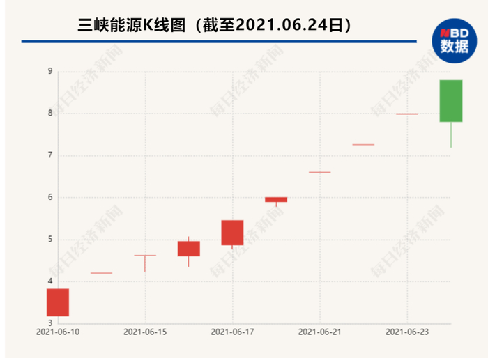 作为上市大涨的新股,三峡能源9天收获了8个涨停板。