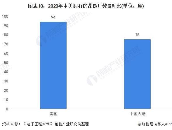 在晶圆厂数量方面,根据《电子工程专辑》公布的数据显示,目前美国拥有94座晶圆厂,而中国大陆仅有75座。