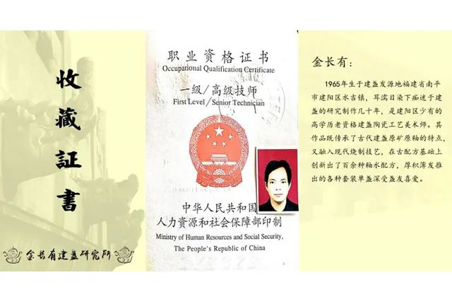 他从事建盏制作研究超过30年,是建盏界少有的高学历老牌建盏高级工艺师。