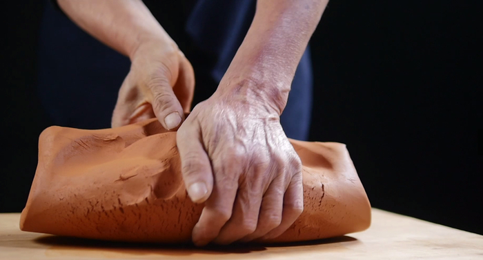 其实为了让坯体更具有可塑性,整个揉捏的过程,繁复且漫长。