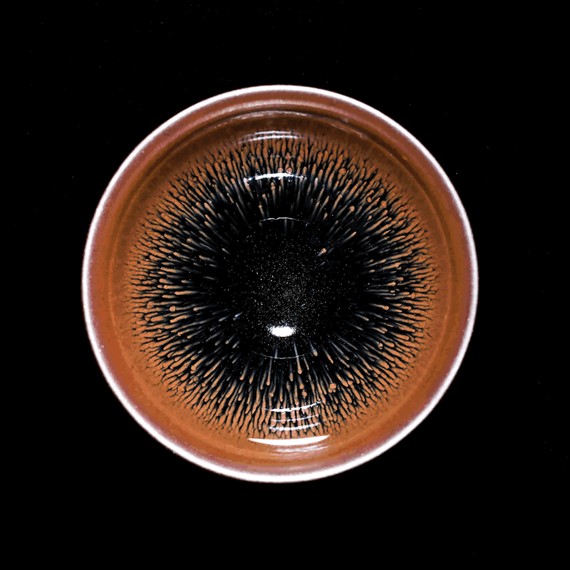 而且釉色在窑内变化难以预估,让每一只建盏里的世界,又都是独一无二。