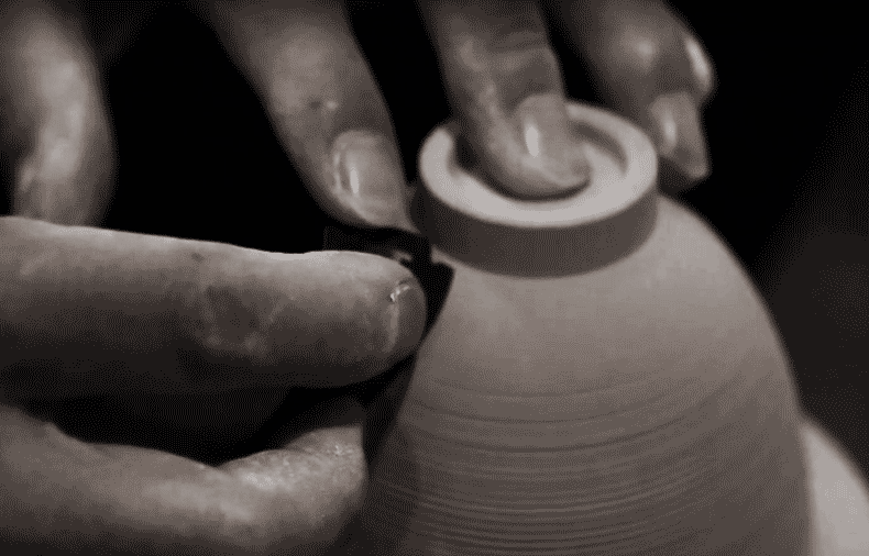 最终成型的束口线不能超过1cm,老师的拉坯水准决定了一个盏的品质。
