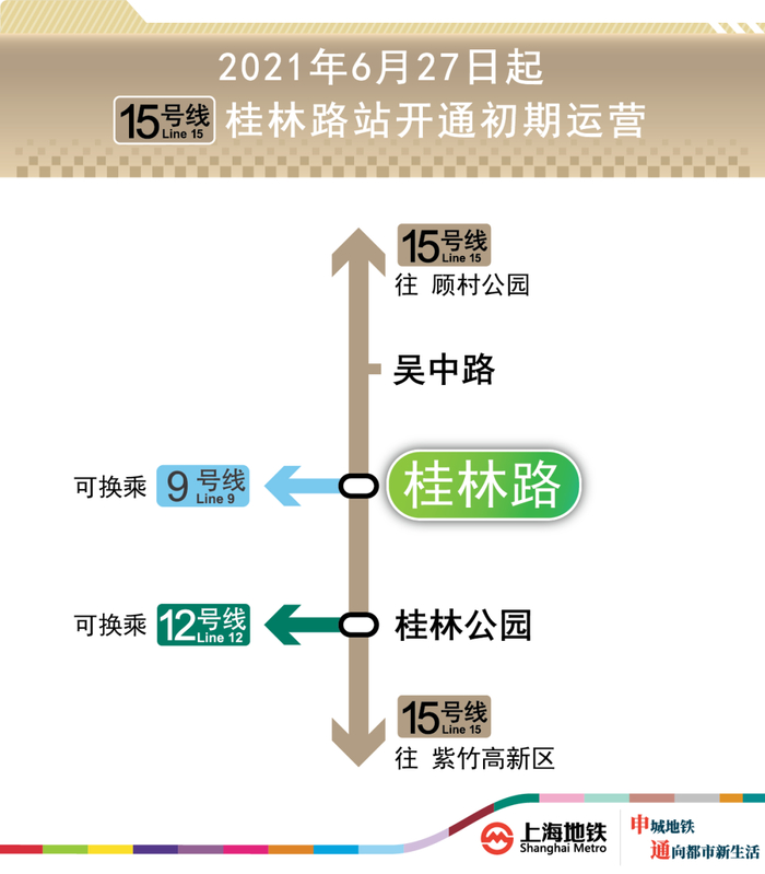 原标题:6月27日起,上海地铁15号线桂林路站开通初期运营