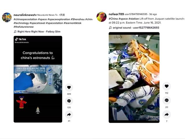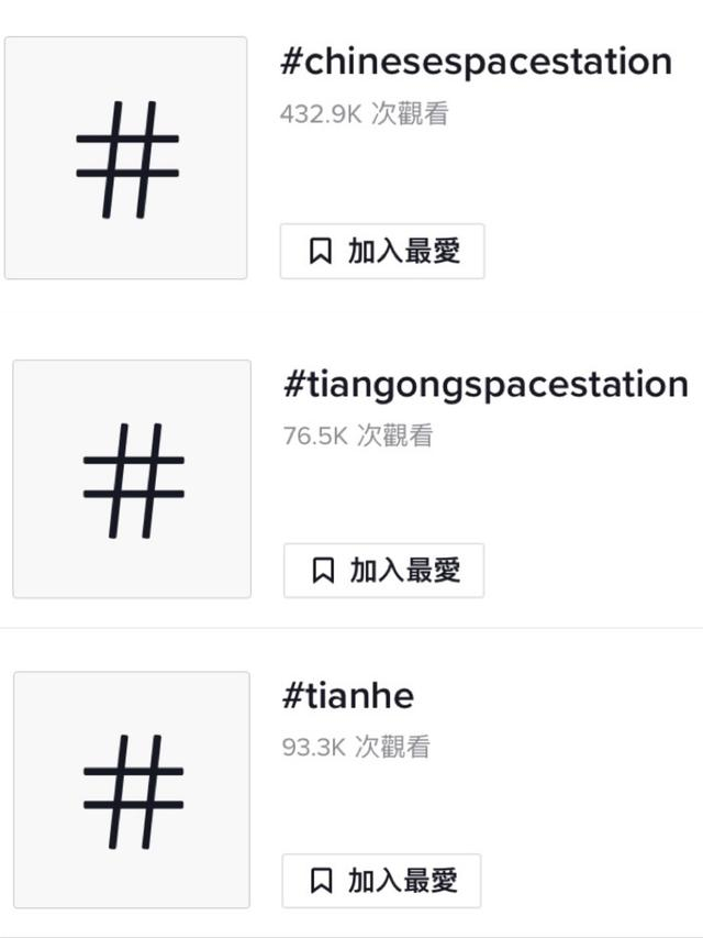 TikTok上与中国空间站相关的三个词条阅读量已达60万