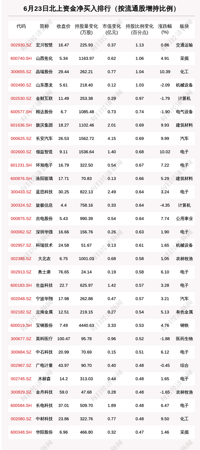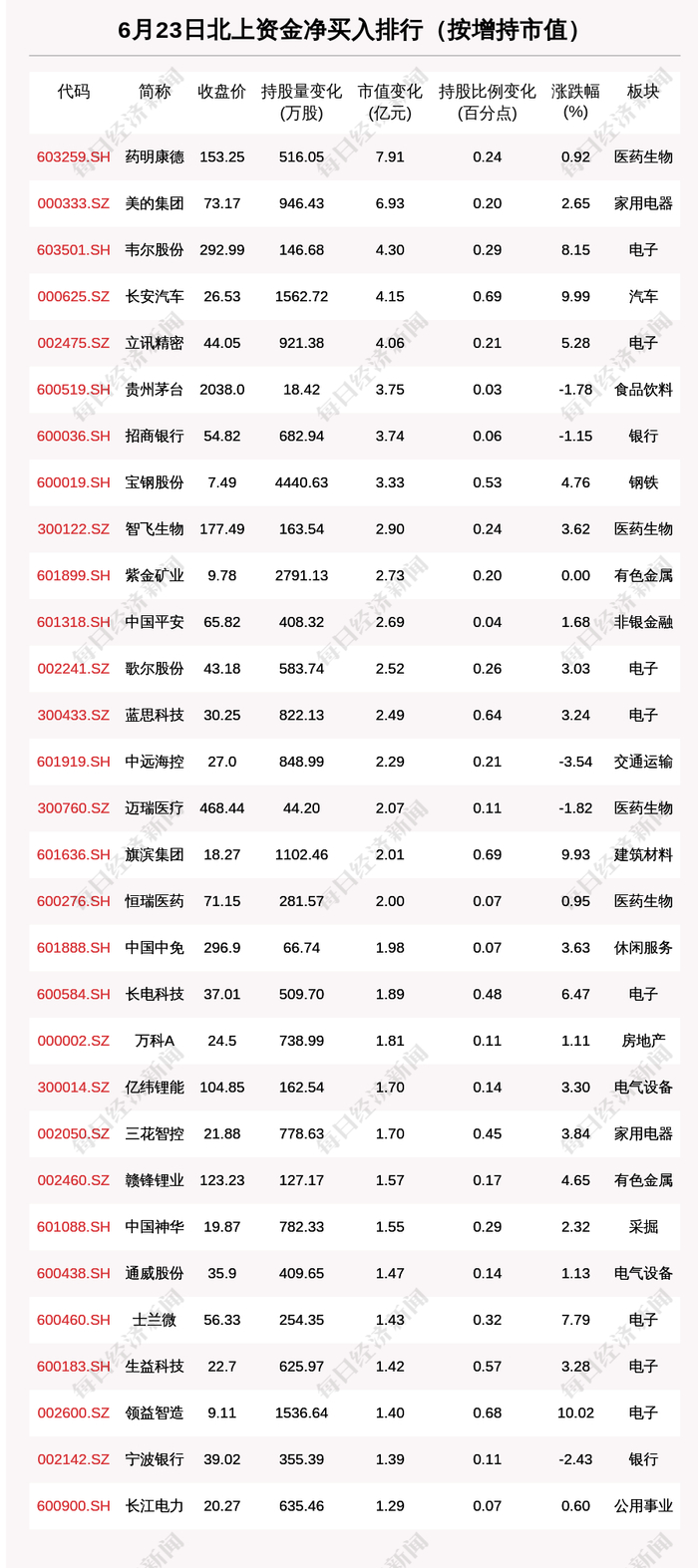北向资金动向曝光:6月23日这30只个股被猛烈扫货(附名单)