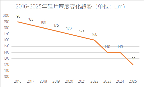 从宏观趋势看,如今每瓦综合耗硅量(g/瓦)持续下降,2019年的单位耗硅量为4.3g/瓦,仅为2009年的31%。对原材料利用率的大幅提高,自然会带来利润空间的同步增长。目前降低耗硅量的主要方式为降低硅片厚度与减少切片损耗。
