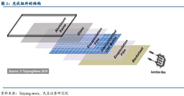 要生产一台光伏组件,仅有电池显然是远远不够的,还需要一系列非硅辅材相配合。辅材的性能对组件最终性能同样有着重要影响。
