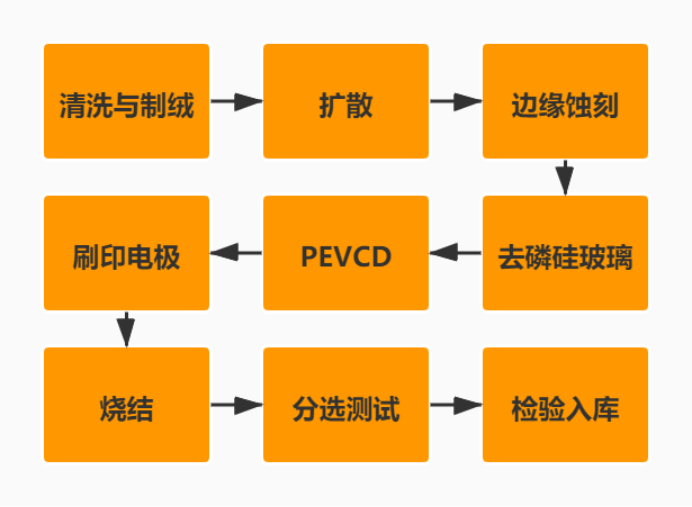 目前主流的光伏电池由硅片经一系列工艺加工而来,由于这一过程比较复杂且不是本文核心,故仅列出示意图,不再另做赘述。