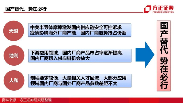 天时:中美半导体摩擦激发国内供应链安全可控诉求;疫情影响海外厂商产能,国内厂商趁势抢占份额;