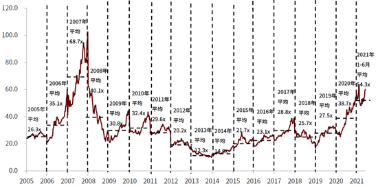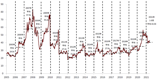 资料来源:Capital IQ,中金公司研究部;注:时间区间为2005年1月3日-2021年6月21日