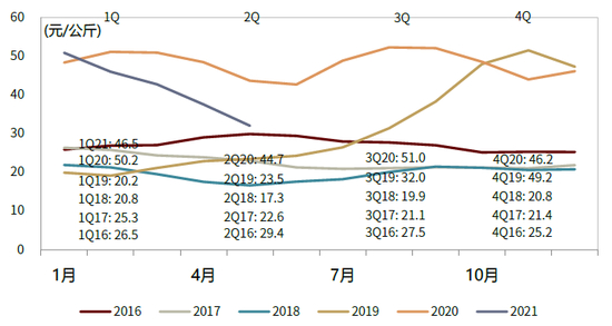 资料来源:农业部,Wind,中金公司研究部;数据截至2021年6月21日