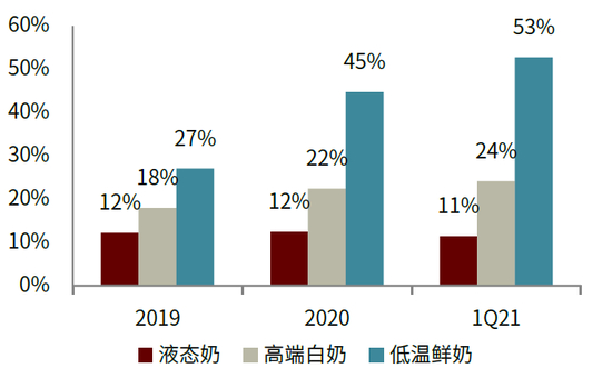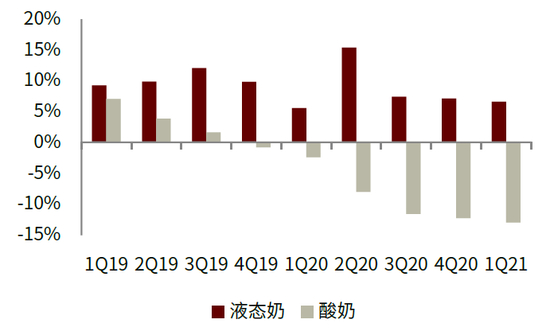 短期看:行业1Q复苏性增长,2Q高基数或短期承压,2H有望继续复苏。疫情后期伴随消费者健康意识提升,液态奶需求旺盛,而酸奶则由于偏休闲属性短期承压。展望全年,我们预计液态奶受益于高端白奶、低温鲜奶需求强劲或延续较高增长,而酸奶因疫情好转或呈现逐渐复苏趋势。考虑2Q20高基数,我们预计2Q21各大乳企销售增长或短期承压,但有望自下半年继续复苏。