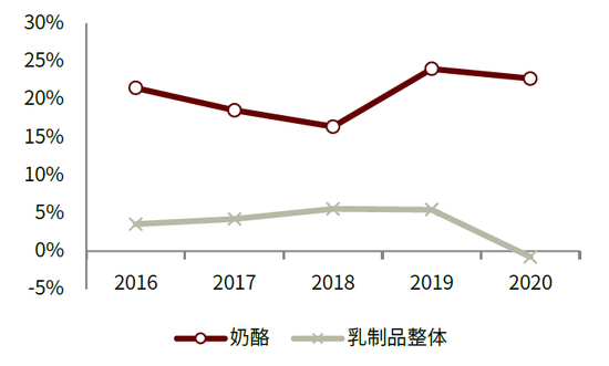 图表:乳制品与奶酪行业销售额同比增速