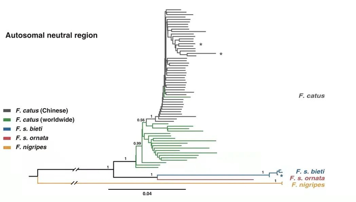 该研究显示,中国本土家猫与世界家猫种群具有相同的遗传背景,意味着东亚的家猫同样可追溯自近东或北非地区的非洲野猫,从而支持了世界家猫驯化的单起源假说。