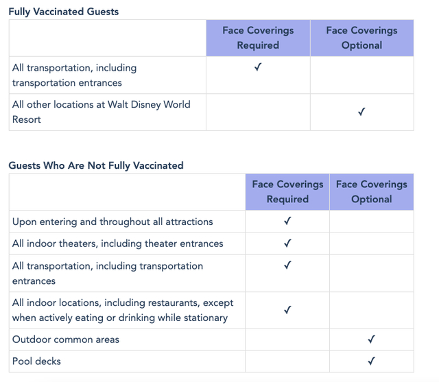 同处美国的奥兰多迪士尼也有类似规定,对于已完全接种疫苗的游客而言,除须在园区内的所有交通工具及入口等区域佩戴口罩外,他们在园区内的所有其他地点可以选择不佩戴口罩,而未完全接种疫苗的游客则须佩戴口罩。