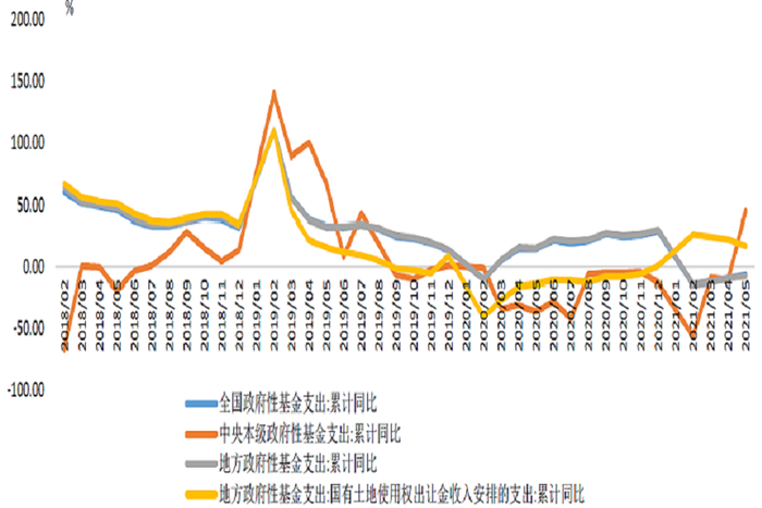 图表2:1-5月全国政府性基金支出同比降幅有所收窄