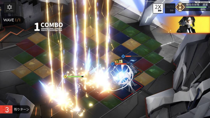 《白夜极光》在前者的消除+战斗的设计之外,舍弃了消除游戏的下落式布局,选用消除方块后随机出现新方块的设计,代替新方块出现的逻辑。同时加入一系列的机关,来提供实际玩法上的变数。