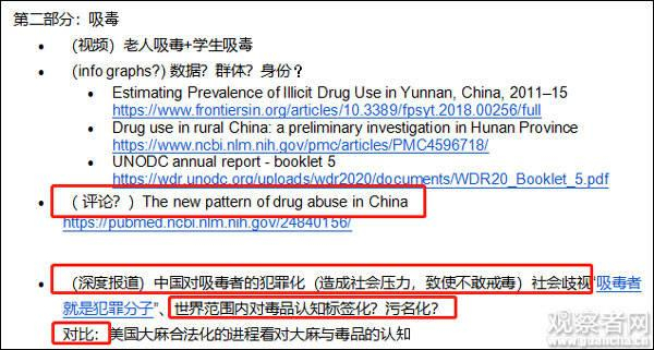 通篇大纲,都是结论先行,不难想象,依据这份大纲撰写的文章发布后,会让很多不明真相的国外网友对中国毒品问题产生根本的误解。