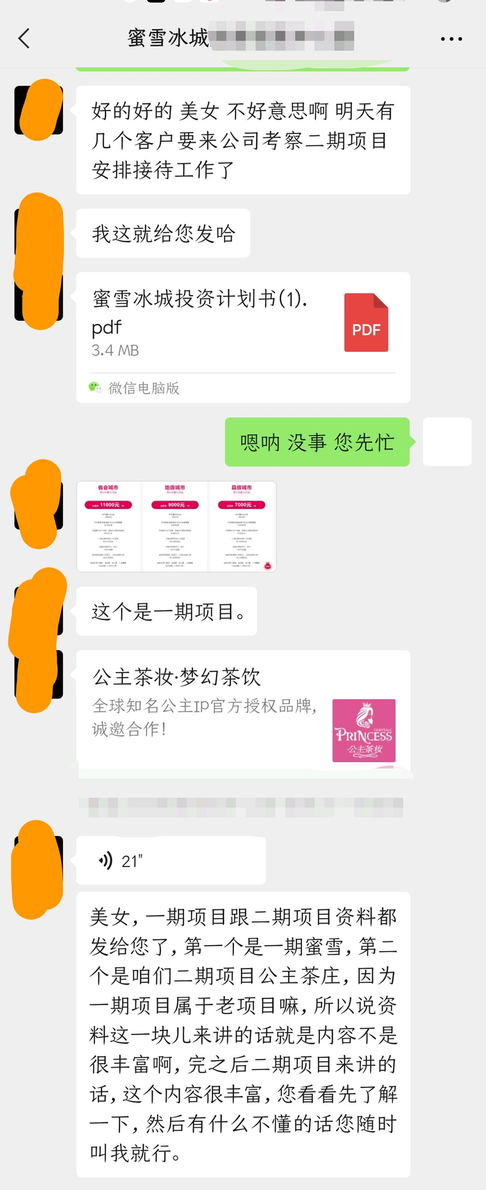 当再去找骗子套话时,他贴心地说,“当初给您去电话,只是根据您的个人情况把公主茶妆介绍给您。您不相信我的话,我可以帮助您申请蜜雪冰城!”并奉上了蜜雪冰城官方加盟申请的二维码,还表示有任何疑问可以来请教。