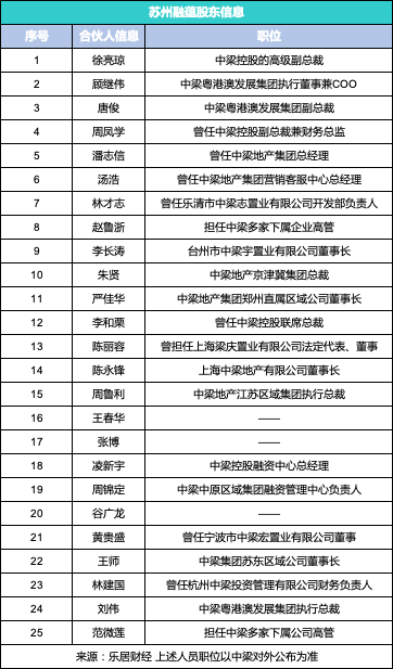 细究发现,苏州融蕴的股东列表中出现了多位中梁高管的身影,例如中梁控股高级副总裁徐亮琼、中梁粤港澳发展集团执行董事兼COO顾继伟、原中梁控股副总裁兼财务总监周凤学等。