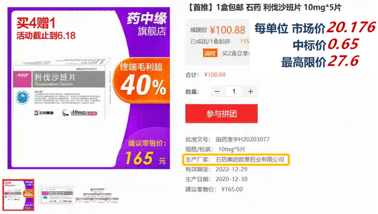 当然,也有多款集采产品中选价远低于批发平台供货价。例如此次竞价最为激烈的抗凝药利伐沙班,最终降幅度达99%,10毫克规格的最高中选价为0.65元/片。