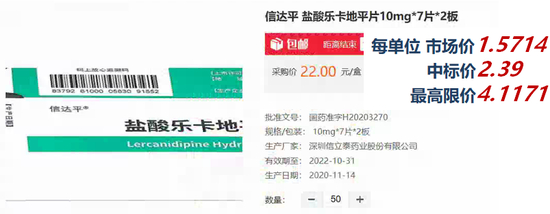 信立泰以2.39元/片(10毫克)中选的乐卡地平,在批发平台上售价为1.57元……