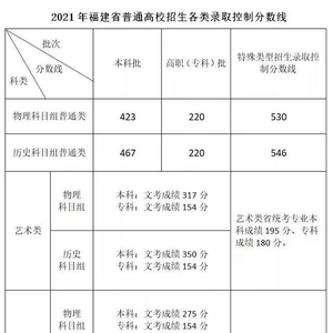 新京报讯(记者 杨菲菲)6月25日,福建省教育考试院公布了该省普通高校招生各类控制录取分数线,其中本科批物理科目组普通类分数线为423分,历史科目组普通类分数线为467分。